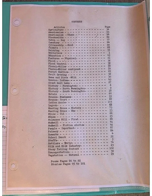 Provided by the Farmington Historical Museum Contents Return to 1950 Project Next See Hist of Farmington UT